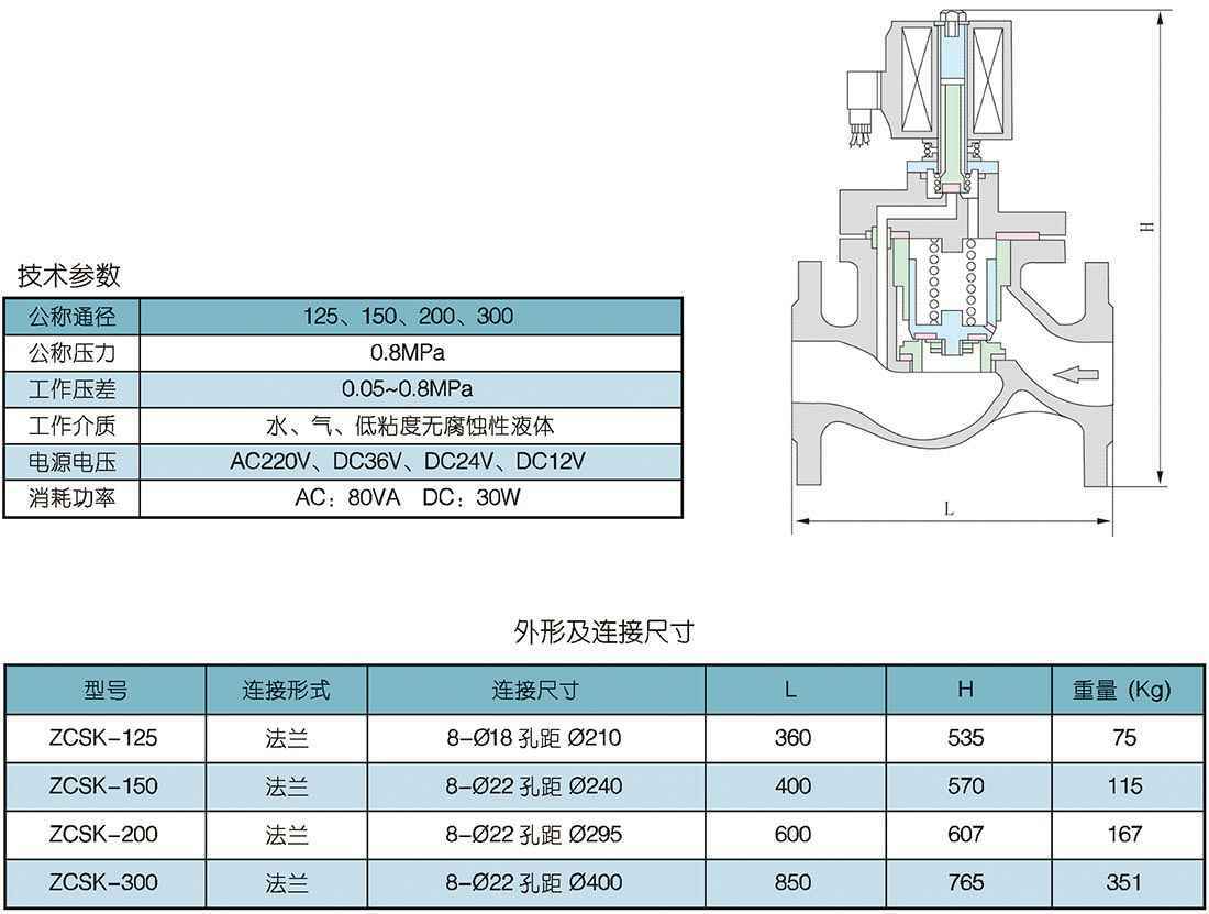 产品展示 > 电磁阀 > 2/2大口径电磁阀 ZCSK-125、150、200、300型